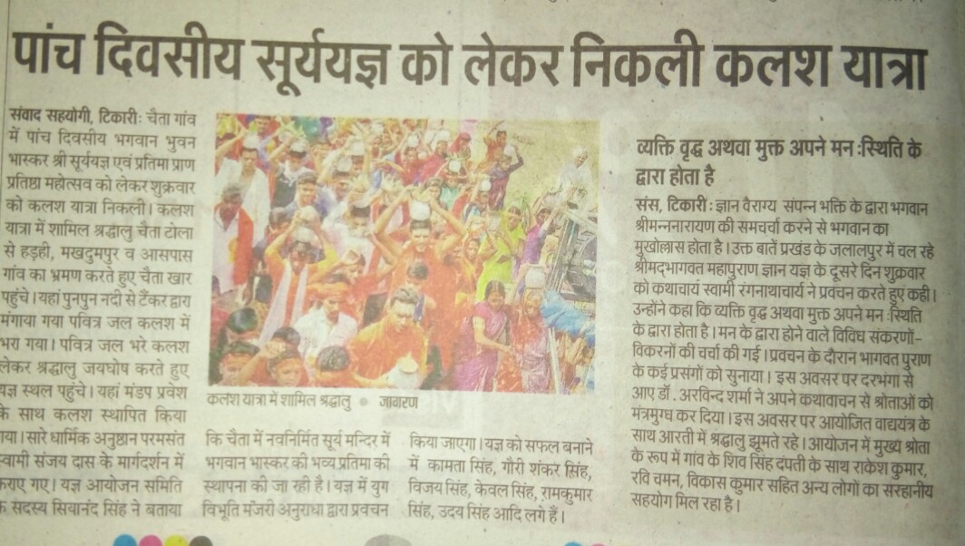 Here is the collection of the images related to the events happining in chaita like images of surya yagya chaita,Images and videos of Durga puja celebrated in indian cultural village chaita of distic gaya. This web page is devloped by the youth of chaita. The main aim of devloping this tradistional and cultural webpage is to connect the people to there mother land who are lost in the jungle of concrete. According to my view own culture should be prefer first like todays in the indian culture everyone wants to follow western culture and civilisation.They Know very well that western can't be fit in indian climatic condition but still due to competation in the society they wants to show extra ordinary welth. That's why we have taken first step to alive own indian culture and also we aspect same from you to your traditinational festivals and culture & enjoy as much as possible...and also thanking you that you have given your precious time to read out this longgg.. page...Keep enjoying...😃