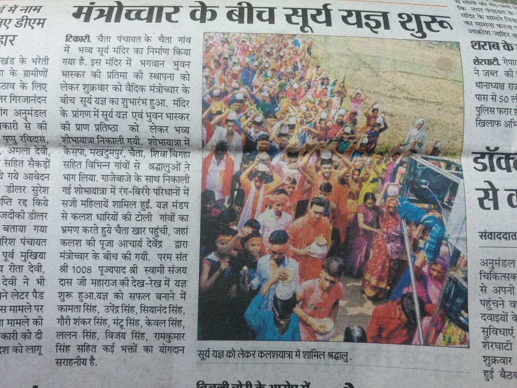 संजय महात्मा ग्राम पंचायत चैता सूर्य यज्ञ 2018 में यग्दाचार्य की भूमिका में।।